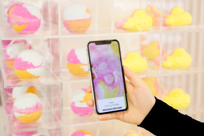 这家以纯白色为基调的体验店也是LUSH全球首间只卖气泡浴球的新型概念店。除了回转寿点店式的转盘设计,与LUSH大多数需要用水来体验的店面不同,🚿原宿店只需下载关联APP后扫描商品,即可得到商品的产地信息和商品介绍,这种方式也更符合LUSH推行的环保节能理念。