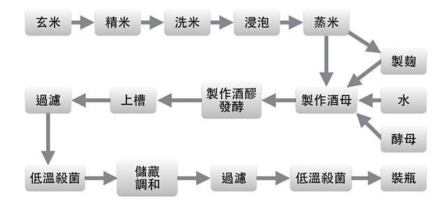依据日本《酒税法》的规定,日本酒是用水、米和米曲为主原料所发酵制成的酒,以制酒方法来分类的话属于「酿造酒」,酒精浓度必须在22度以下。发酵完成的日本酒因带有酒粕而呈现乳白色,又称为「浊酒」(にごりざけ),经过过滤的程序,呈现透明无色或是带点淡淡的黄色,就成为一般所熟知的「清酒」。日文中的「NIHONSHU」(にほんしゅ)或是「SAKE」(さけ)指的就是清酒。而身为清酒原型的浊酒,其实可以饮用,在日本市面上也可以看到浊酒的商品。