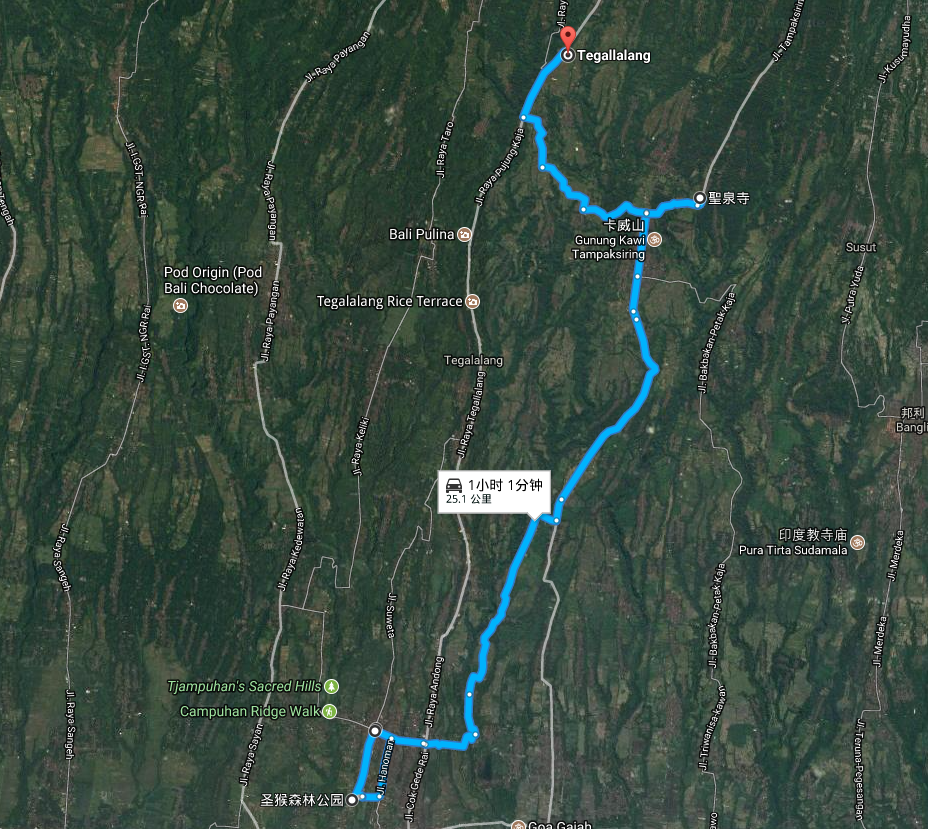 路线一:阿勇河+乌布皇宫+乌布市场+圣猴森林公园+圣泉寺