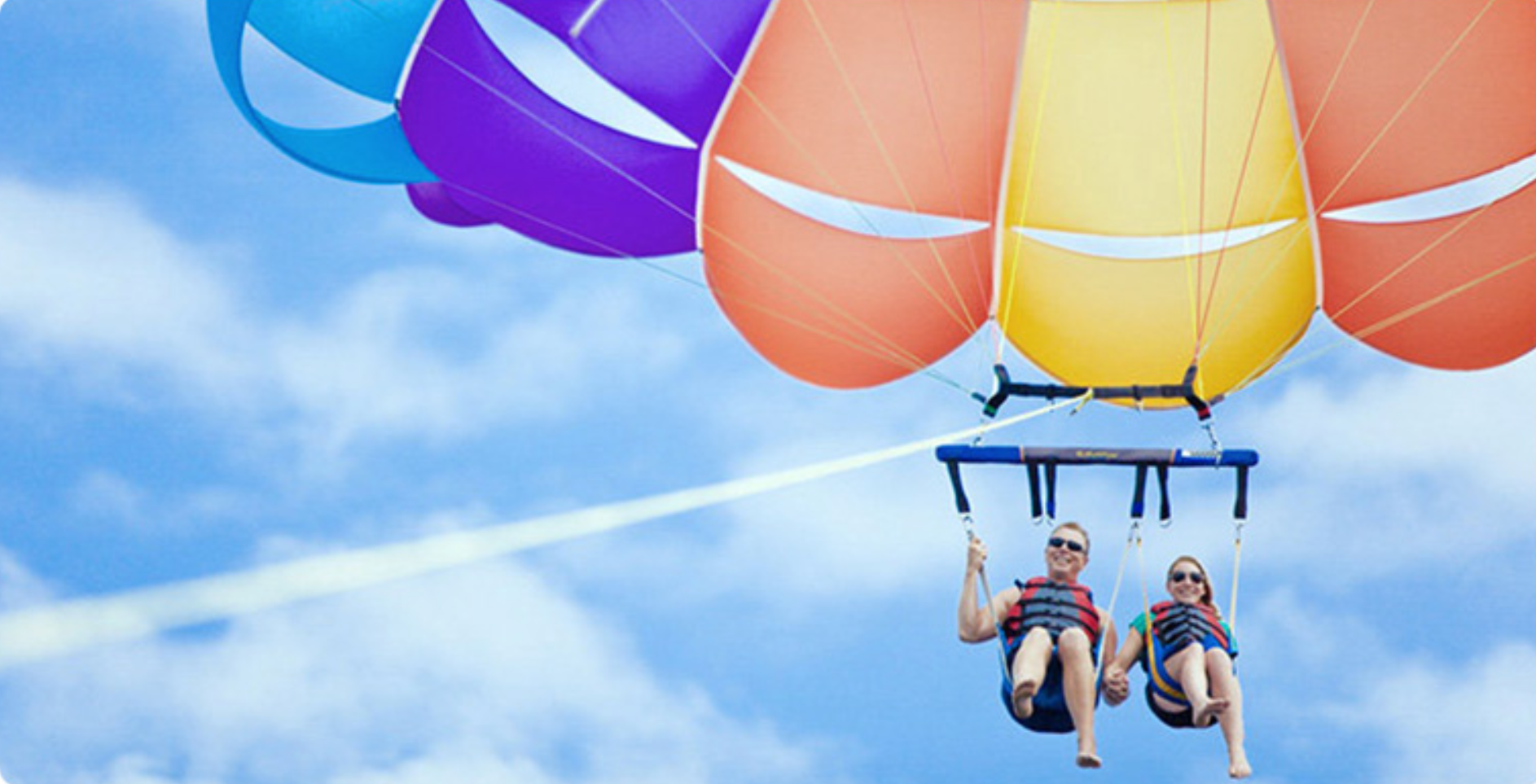 拖曳伞,又叫海上滑翔伞,利用快艇在海上加速,达到飞起效果,游客身缚拖曳伞跟随快艇在海上漂浮,可俯瞰壮丽海景,无需技巧,你只需稳稳的坐着,享受海上的刺激。
